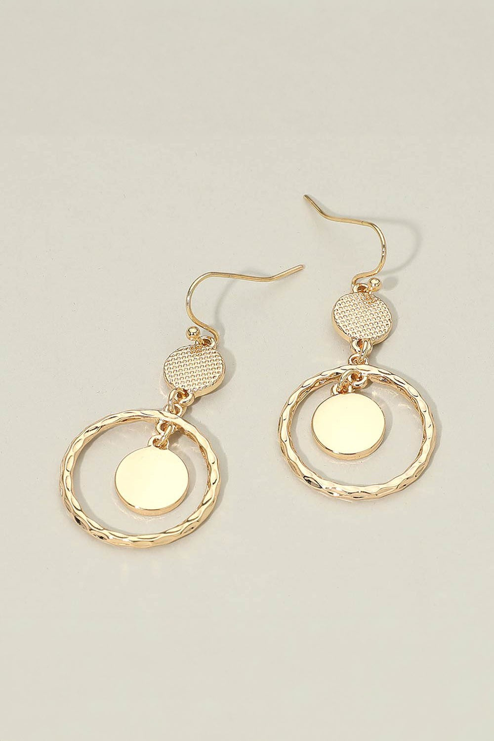 Fish Hook Back Elevate everyday style with these textured hoop disc drop earrings. Featuring a circular open hoop paired with a smooth hanging disc and a subtle textured top accent, this design adds depth and gentle movement. Lightweight and comfortable, they transition easily from casual wear to work and evening looks. A versatile accessory that complements modern, minimalist, and seasonal collections while offering timeless appeal and effortless styling.