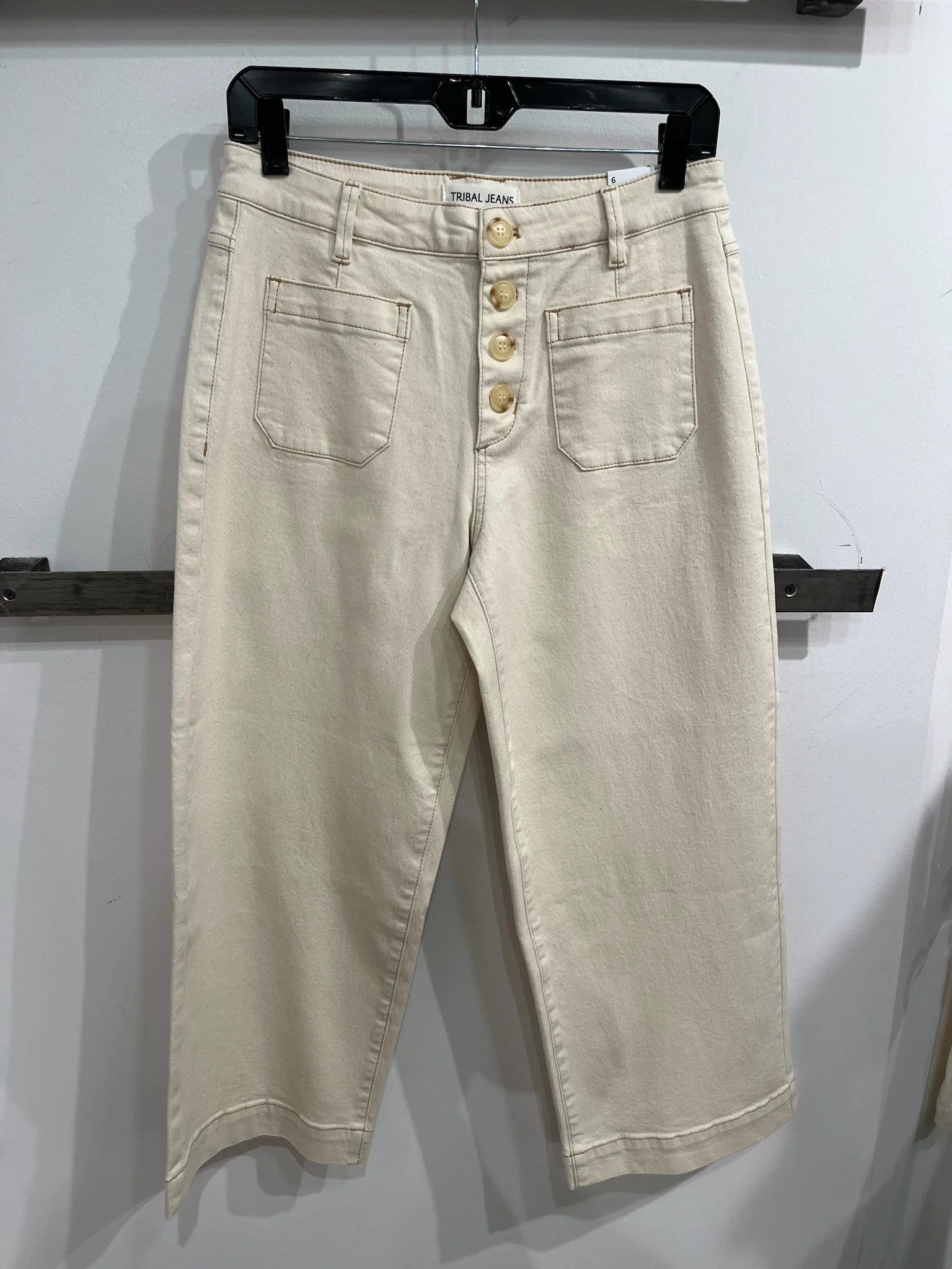 Introducing the Audrey Wide Crop Pants in Ecru - the perfect blend of style and comfort. Made with high-quality fabric, these pants provide a relaxed fit and a wide cropped leg, ensuring maximum breathability and mobility. Elevate your wardrobe with these versatile and fashionable pants.