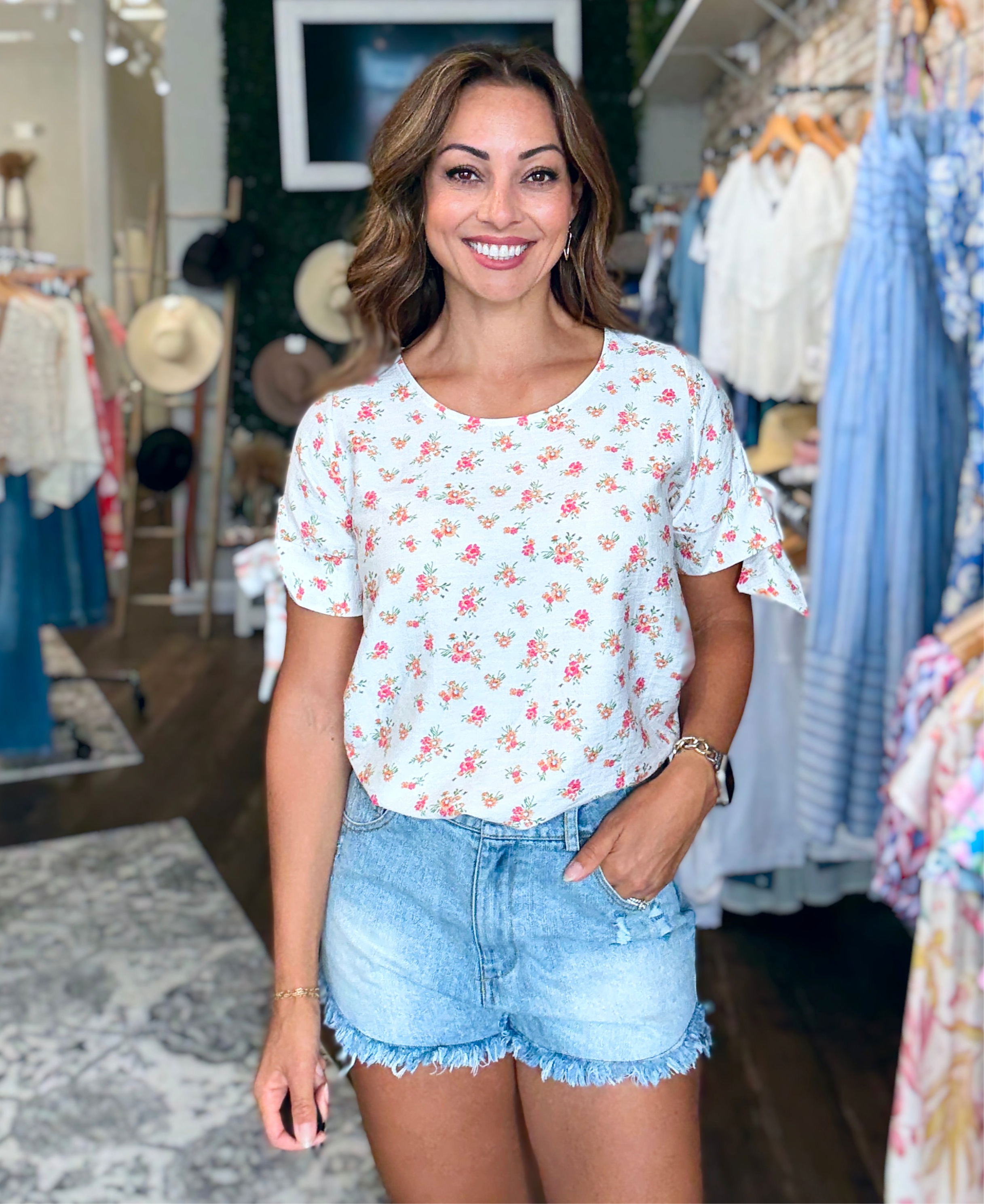 Floral Top with Tie Detailed Sleeves