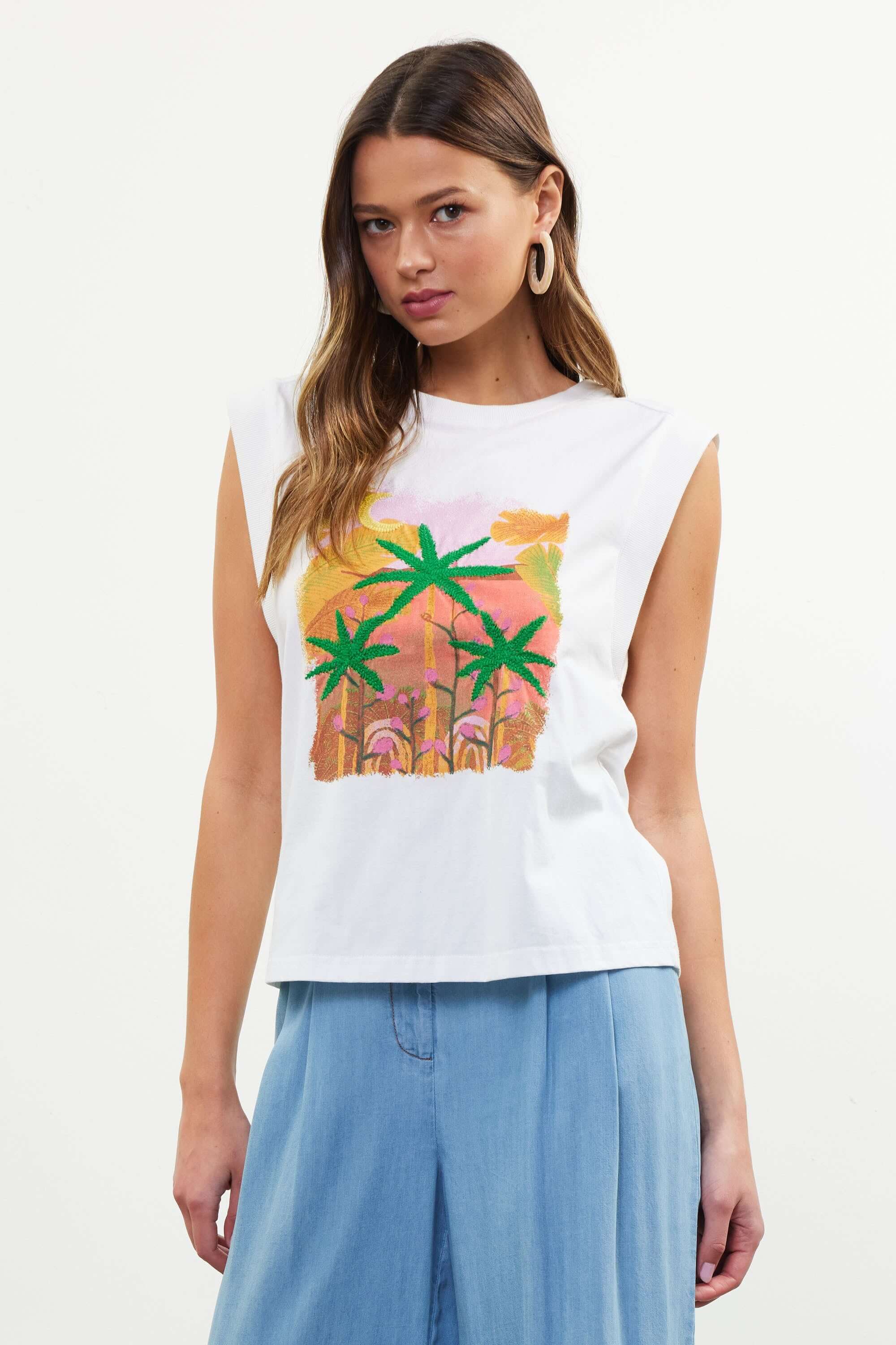 Embrace effortless style with the Palm Tree Cap Sleeve Top. Its breezy design and flattering cap sleeves make it perfect for warm days or casual outings. Lightweight and comfortable, this top adds a touch of tropical charm to your wardrobe, helping you stay cool and chic wherever you go.