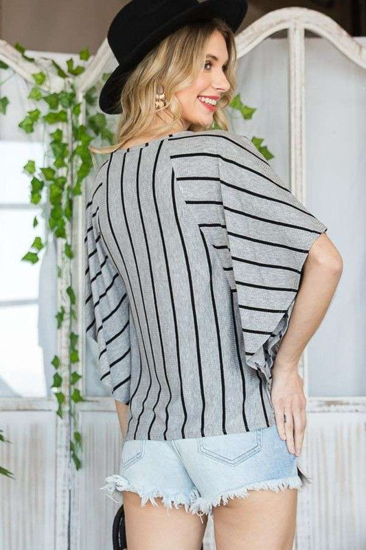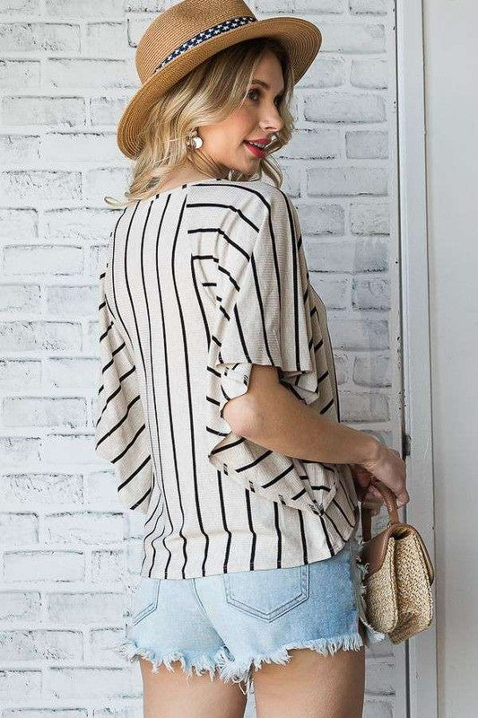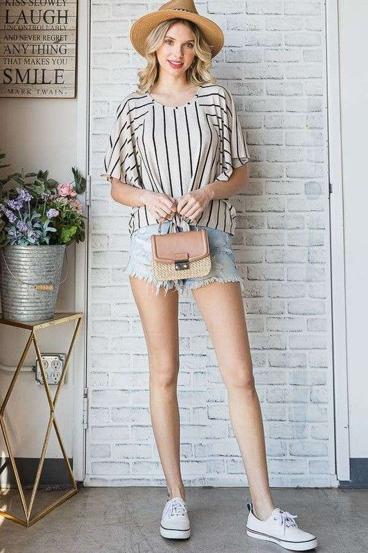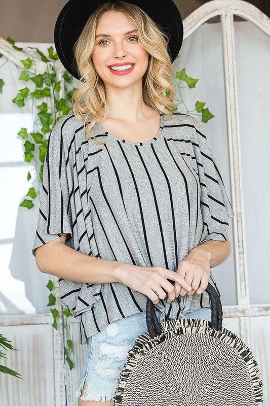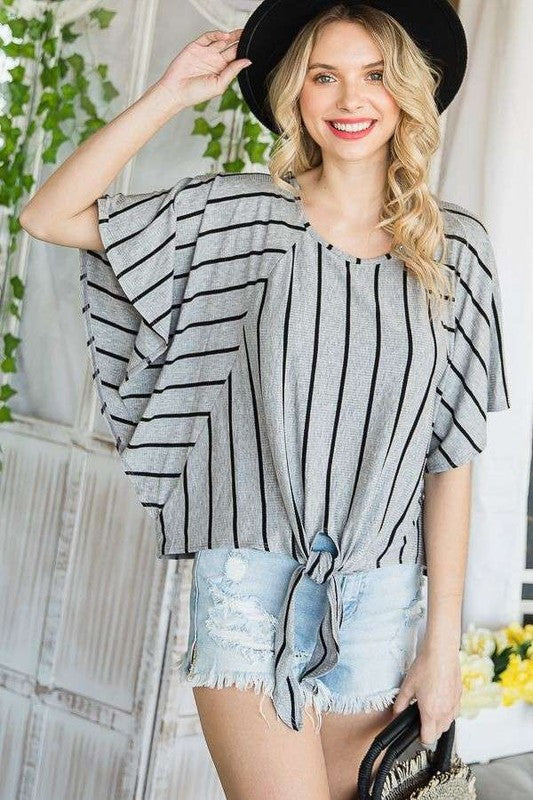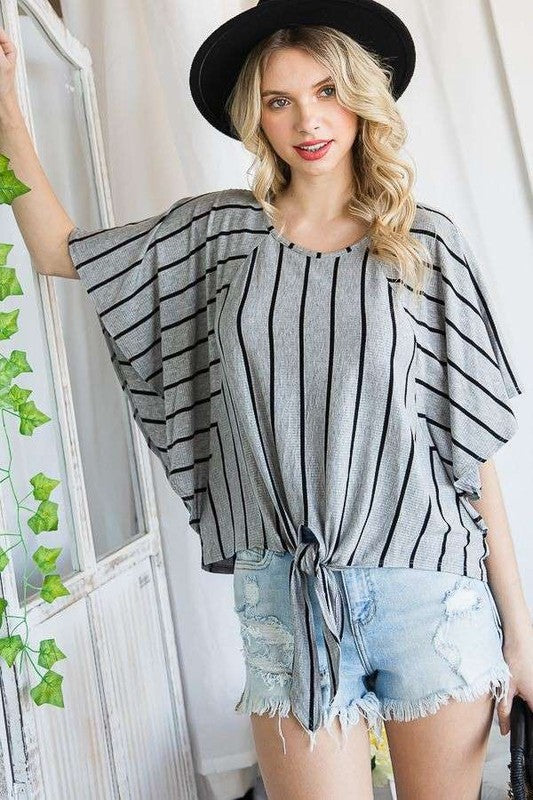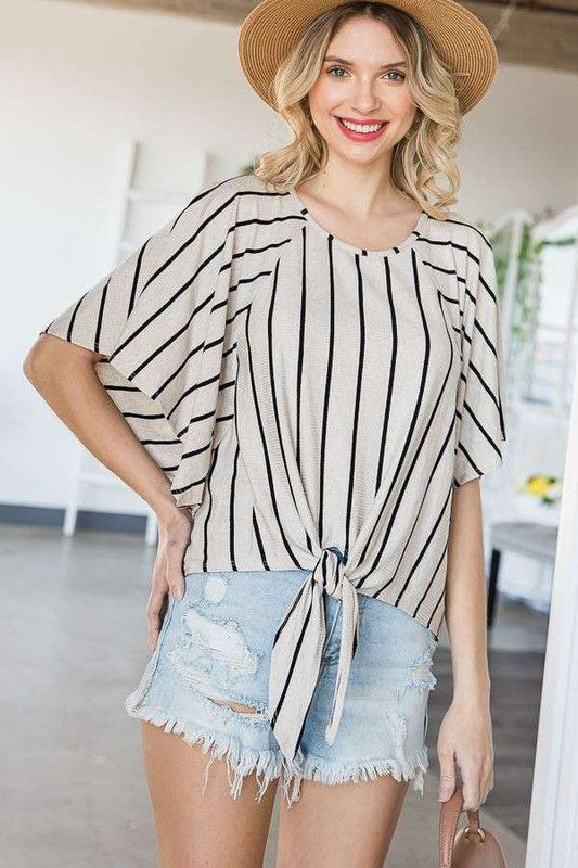 STRIPE PRINT TIED HEMLINE OF THIS RELAXED TOP