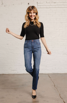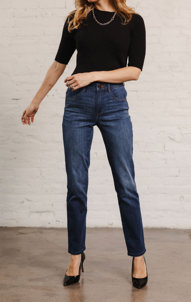 Meet your new favorite jeans: the Mac and Me High Rise Straight. These jeans feature a flattering high-rise waist with a 10” rise, a classic straight leg with a 14” leg opening, and a 30” inseam. The comfortable fit, classic blue wash, and flattering silhouette make them perfect for everyday wear, from casual outings to more dressed-up occasions.