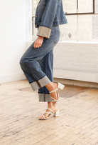 Make a statement with these stylish cropped denim jeans featuring a chic fixed cuff detail. With a 27" inseam, 20" leg opening, and a flattering 10" rise, this pair combines comfort and a modern silhouette. The medium-wash denim adds a timeless appeal, while the bold cuff design brings a fresh, contemporary touch. Perfect for pairing with heels, sneakers, or sandals, these jeans are versatile enough for casual or elevated looks. A must-have for anyone seeking a balance of effortless style and standout details!
