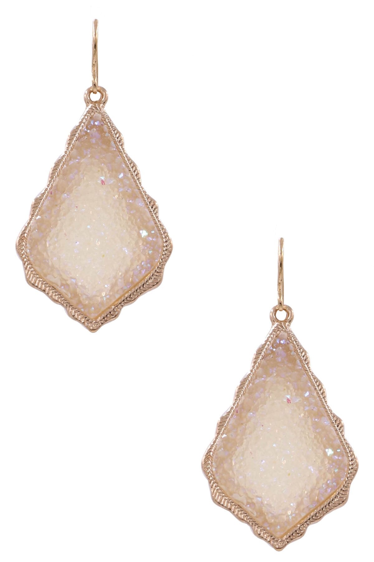 Featuring shimmering natural stones that catch the light exquisitely. Their refined teardrop shape offers timeless sophistication, perfect for both formal occasions and adding a touch of luxury to everyday wear. Experience the subtle sparkle and unique texture that make these earrings a captivating accessory for any discerning wardrobe.