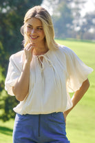 Elevate your everyday wardrobe with this ivory crop top, featuring distinctive balloon pleating that adds dimension and movement to your silhouette. The short sleeves offer a modern, versatile cut perfect for layering or wearing solo, while the cropped length creates a flattering, contemporary look. Crafted for comfort and style, this piece transitions seamlessly from casual outings to dressed-up occasions. A timeless neutral that pairs effortlessly with everything in your closet.