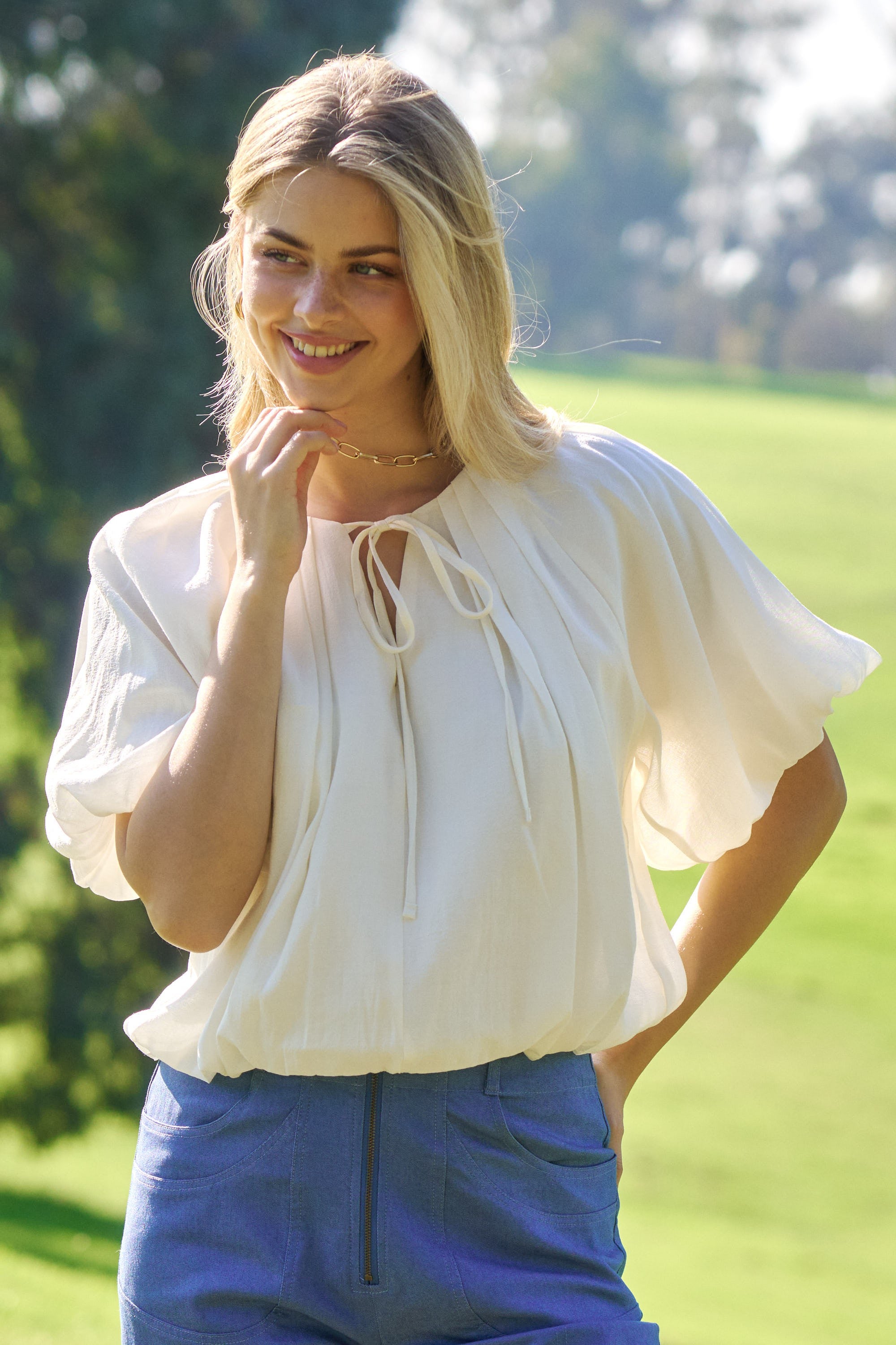 Ivory Balloon Pleated Crop Top