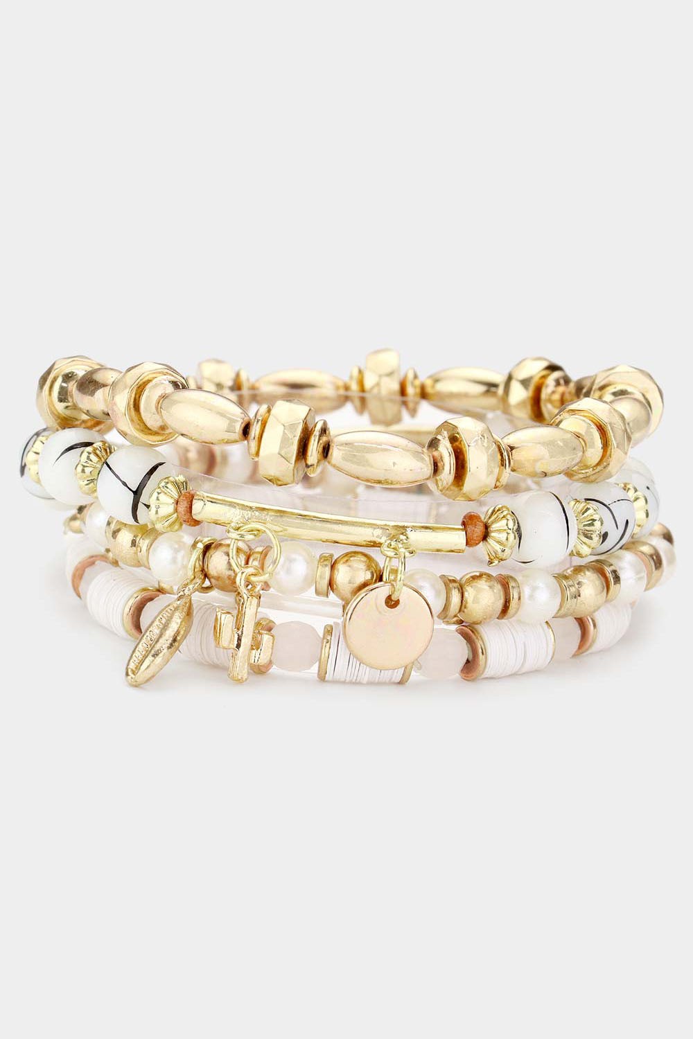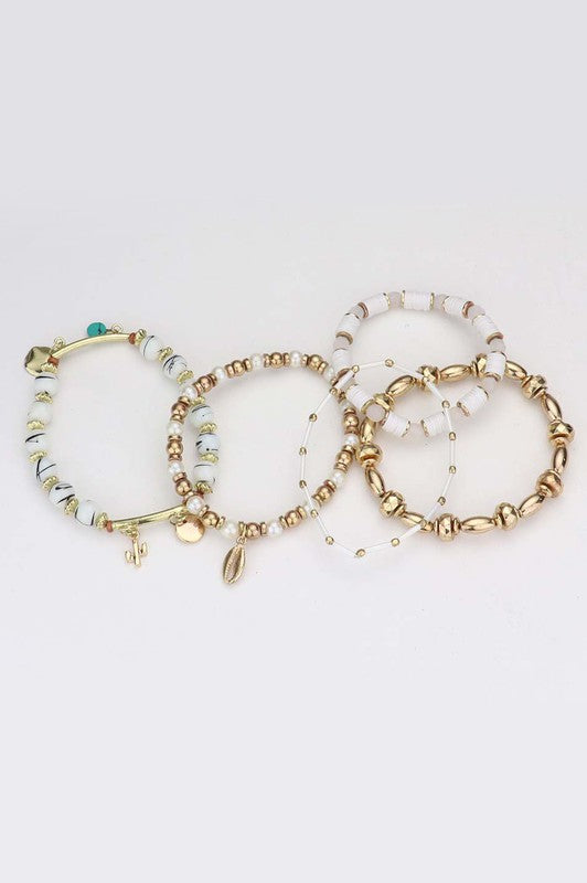 Add a touch of coastal elegance to your look with this set of 5 Puka Shell Cactus multi-beaded bracelets. Featuring natural puka shells paired with vibrant cactus-inspired beads, these bracelets offer a stylish, layered accessory that complements any outfit. Lightweight and comfortable, they are perfect for everyday wear or special occasions, bringing a fresh, beachy vibe to your wrist. Elevate your accessory game effortlessly with this versatile and eye-catching set.
