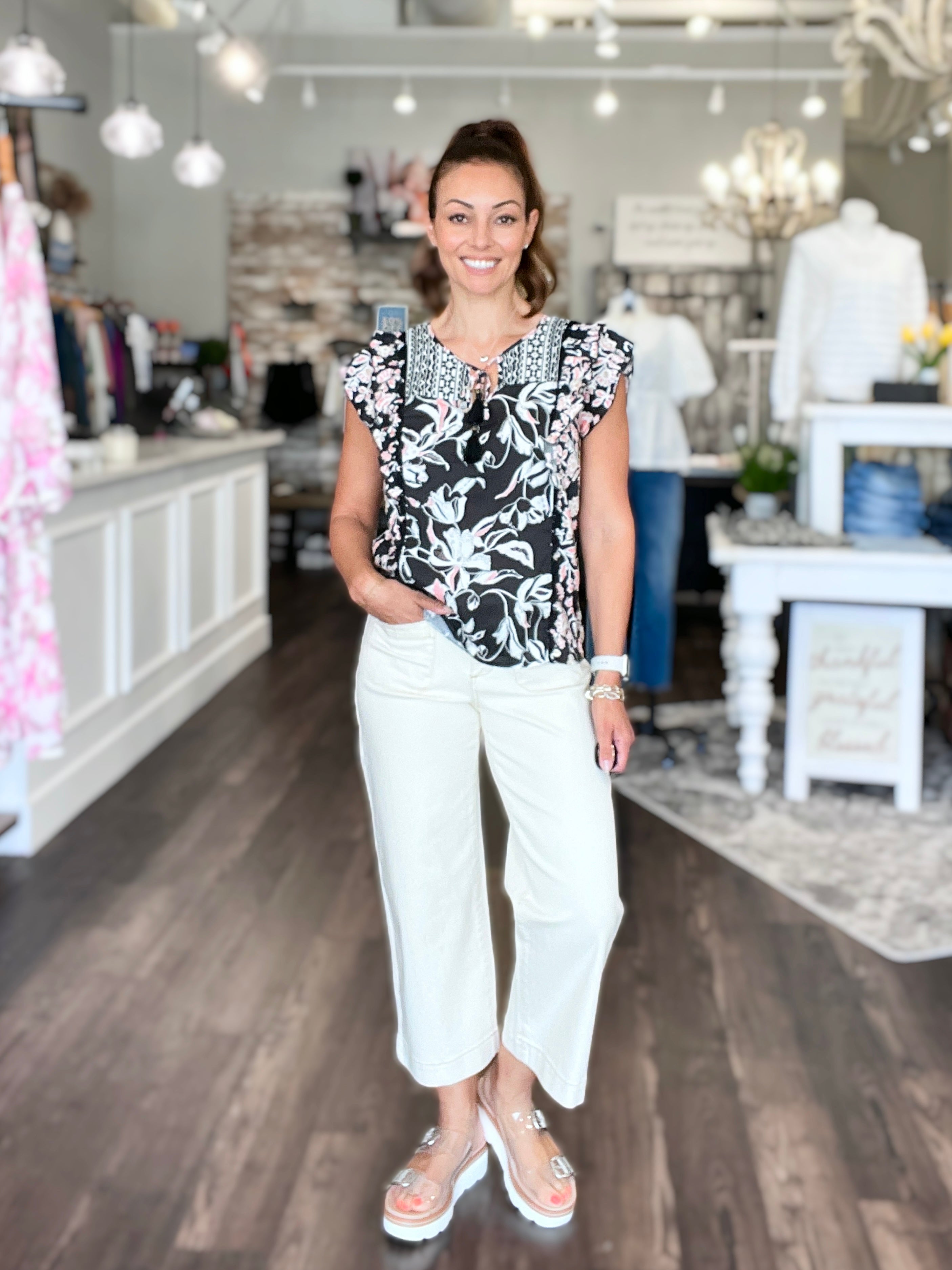 This Coco Milk Mixed Print Blouse boasts a unique blend of patterns for a chic and versatile look. Made with quality materials, this blouse offers both comfort and style. Elevate your wardrobe with this statement piece.