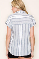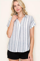 Elevate your wardrobe with our Roll Up Sleeve Collared Top. Featuring crisp stripes and a versatile design, this top is perfect for both casual and formal occasions. Add a touch of sophistication to any outfit and make a statement with the roll-up sleeves. Upgrade your style game today!