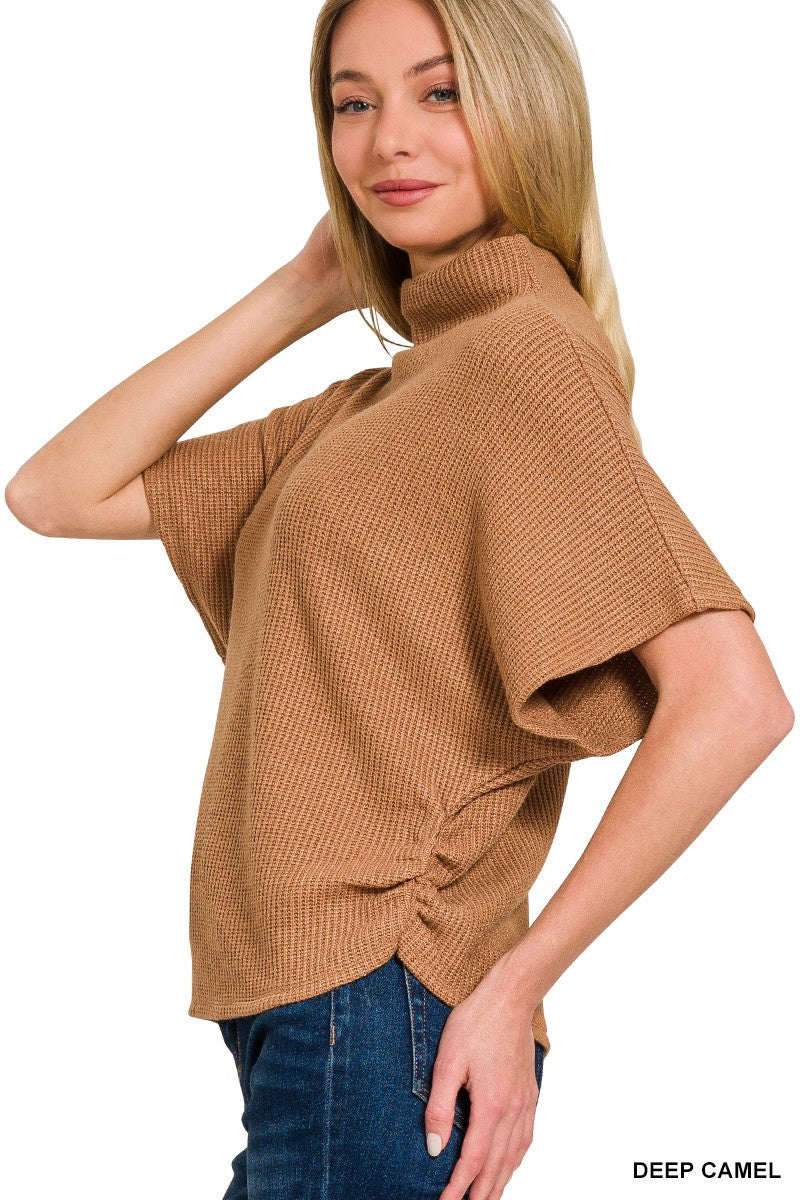 Mock Neck Sweater Side Shirred