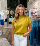 Knit mock neck short sleeve top. Very comfy and easy to pair with any bottoms! Don't miss out on this popular style!