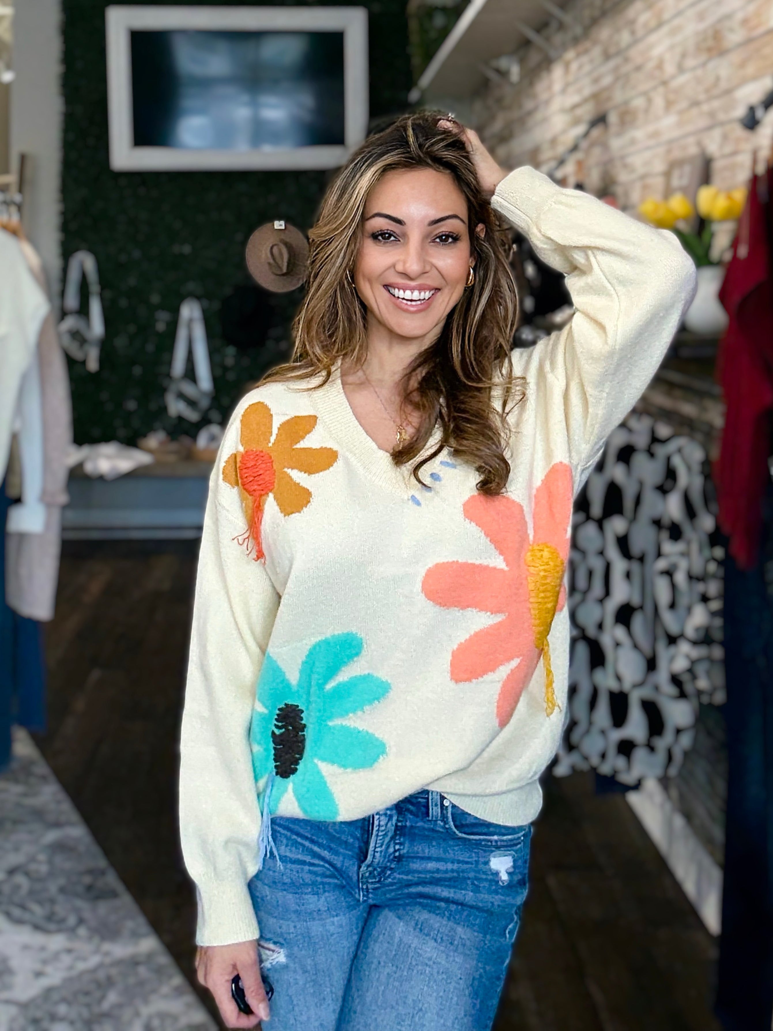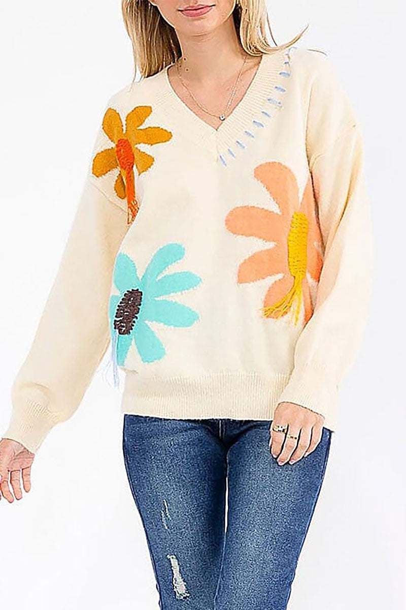 This charming floral pattern V-neck pullover sweater has a delicate botanical design that brings a fresh, feminine touch to any outfit, while the classic V-neckline flatters and elongates. Crafted for comfort and style, this versatile piece transitions seamlessly from casual weekends to polished office settings. Perfect for layering or wearing solo, it's a timeless addition that works season after season.
