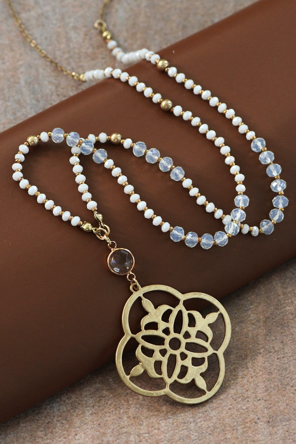 Mixed Glass Crystal Beaded Chain Pendant Necklace