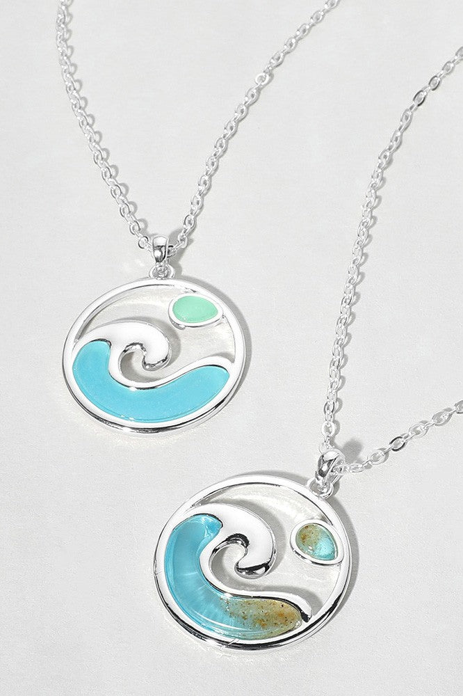 Expertly crafted, the Sea Glass Wave Pendant Necklace features a delicate disc pendant made from authentic sea glass. Handpicked from the shore, each piece of sea glass adds a unique touch to this beautiful necklace. Perfect for adding a touch of ocean-inspired elegance to any outfit.