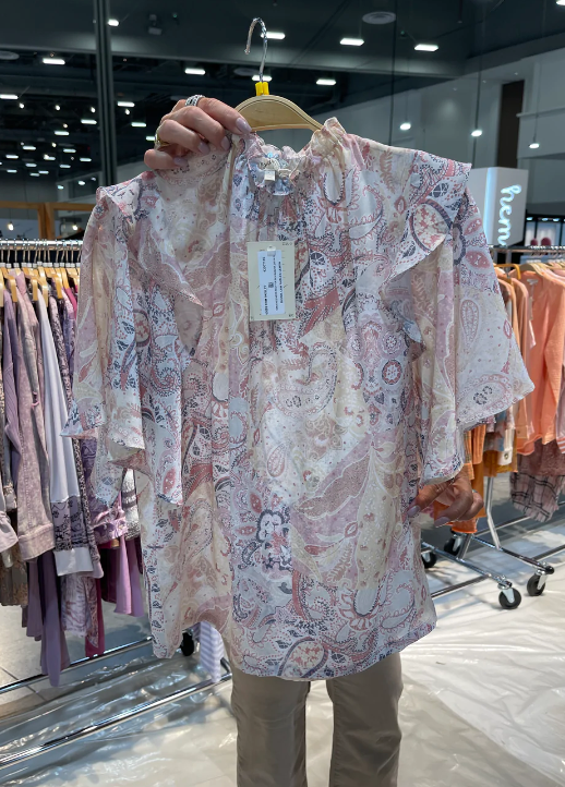 Smocked Neck Flutter Sleeve Blouse - HQ